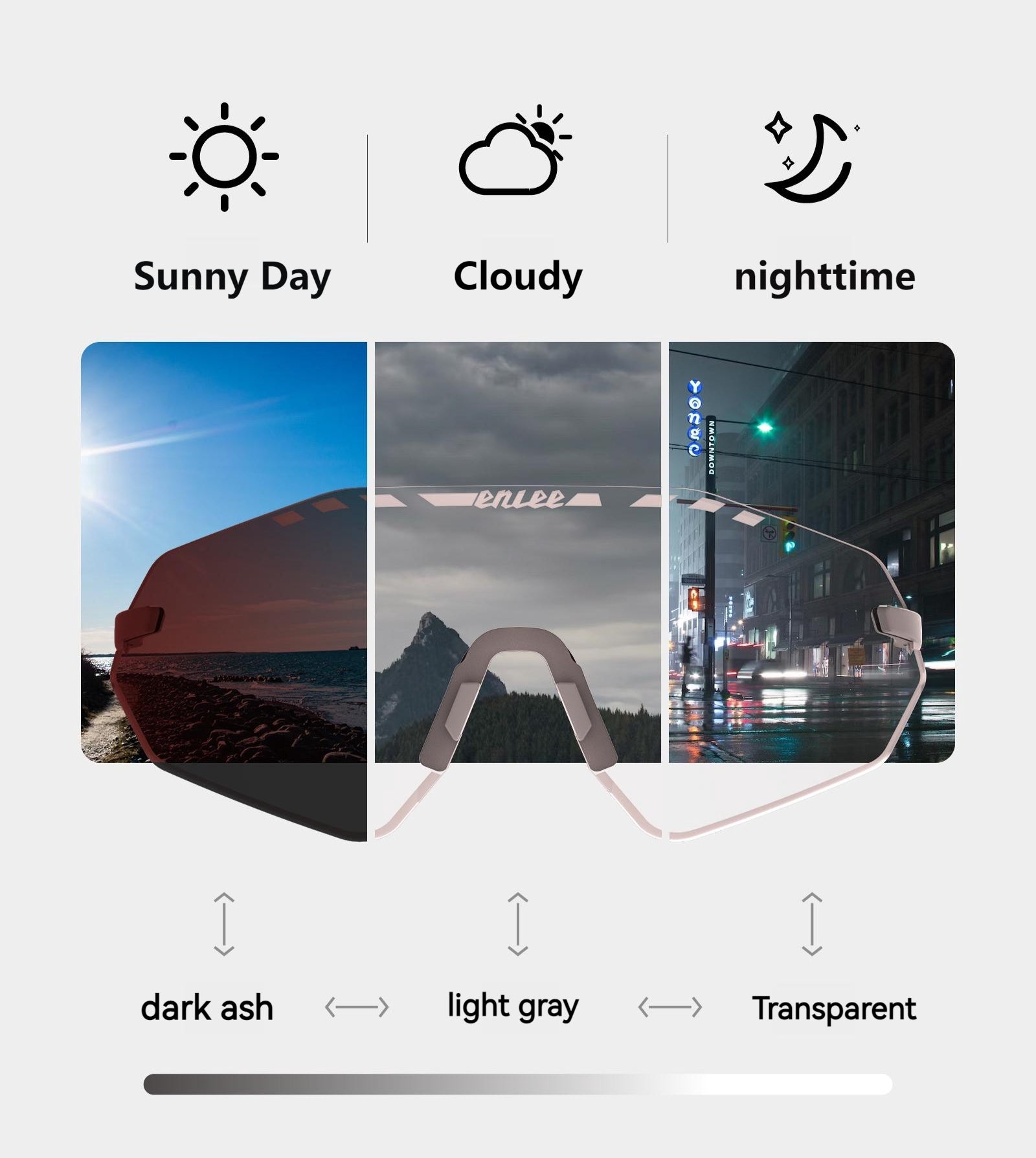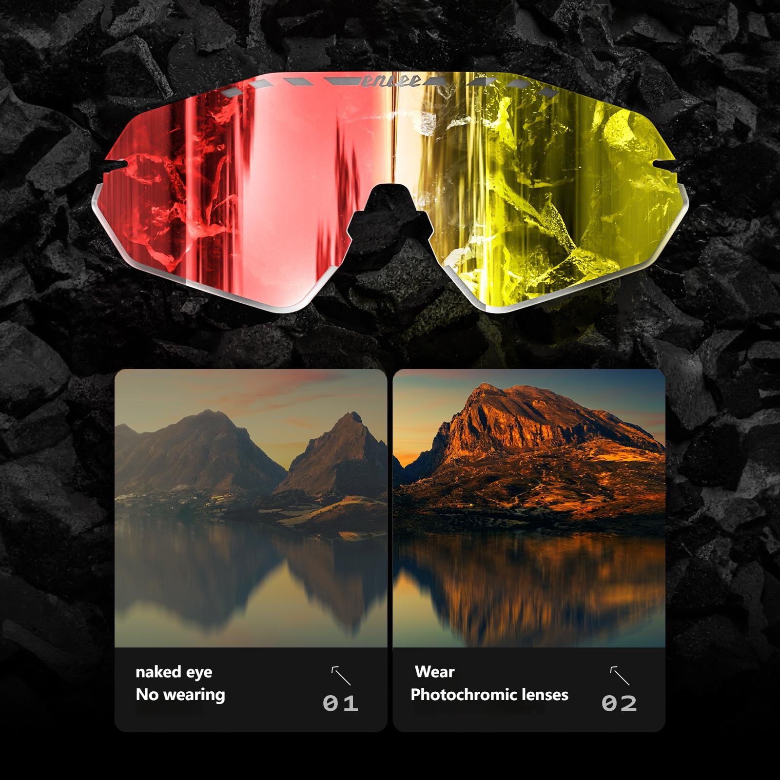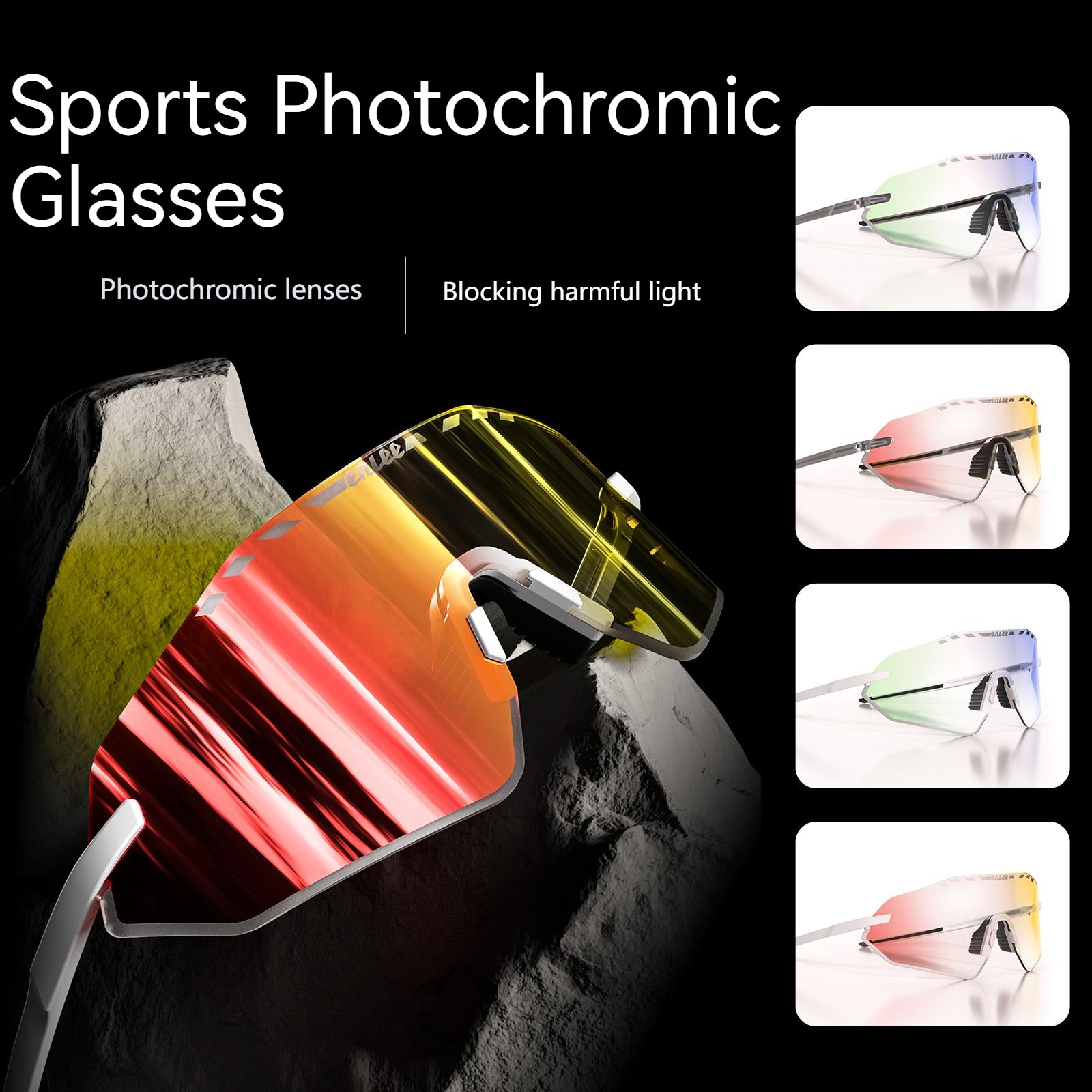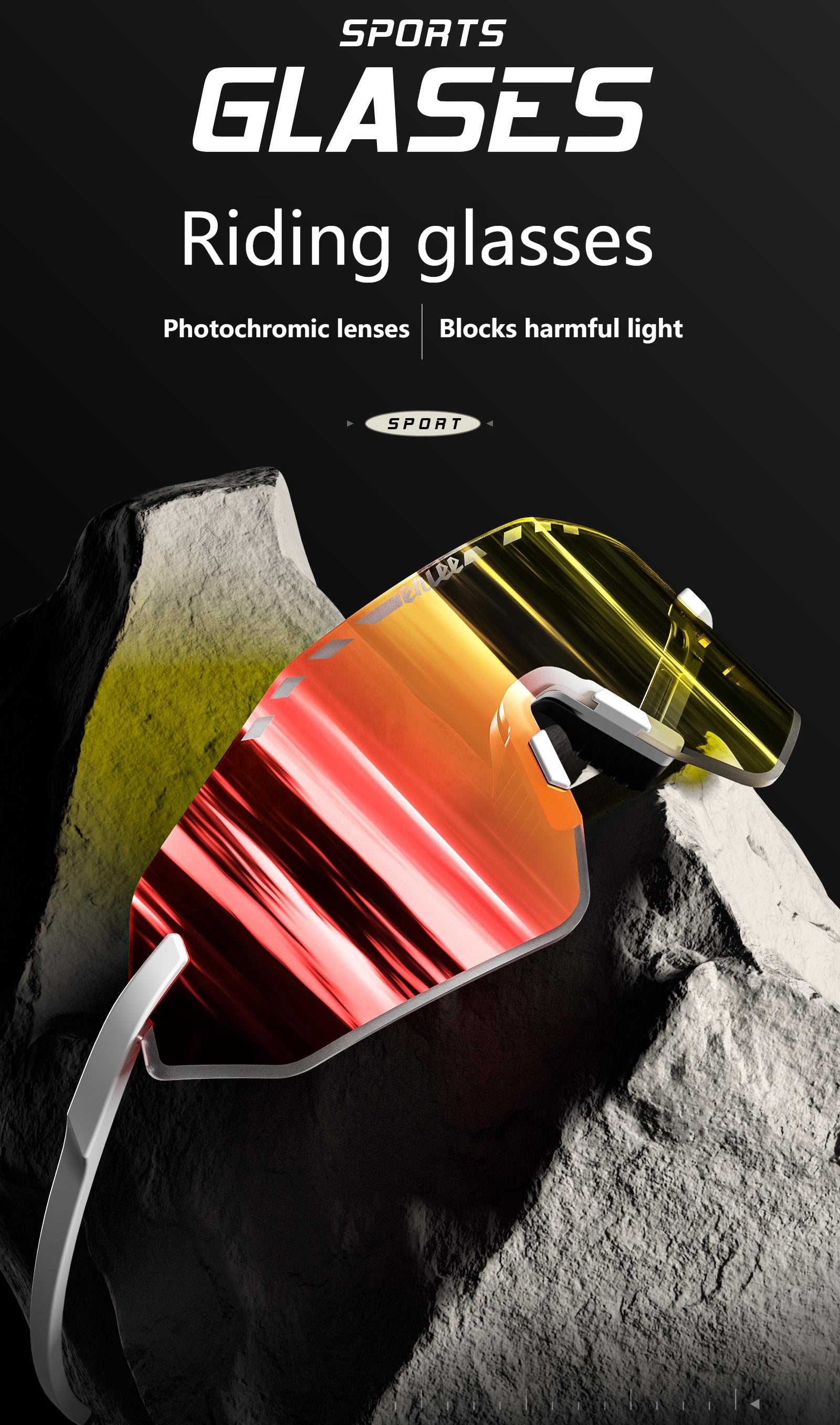 ENLEE E600 Photochromic Glasses Color Film Cycling Eyewear Men Women Frameless Sports Goggles