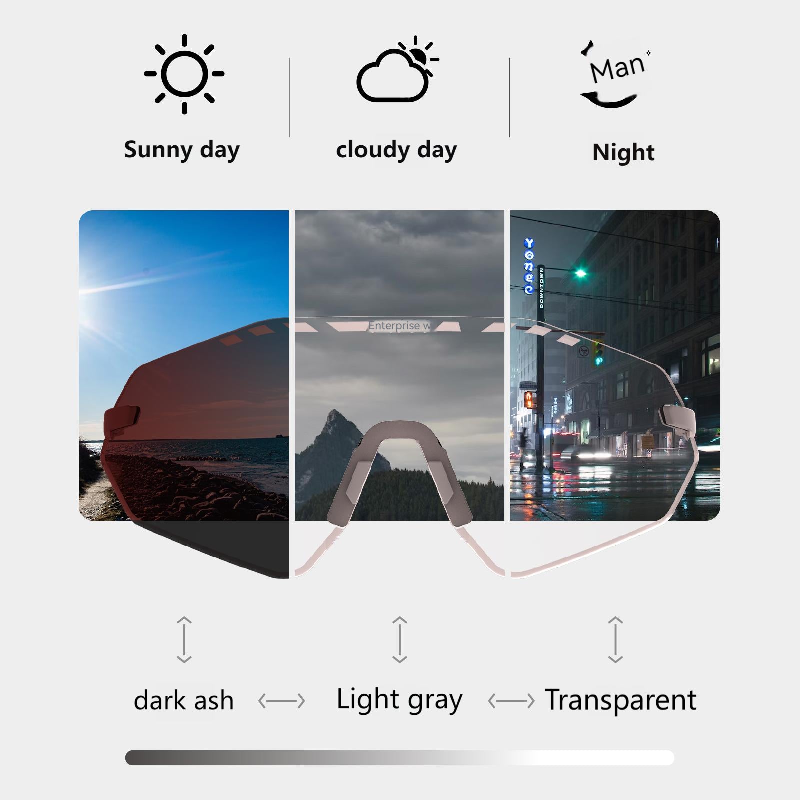- The photochromic lens technology allows an adjustment of the light transmission, can convert from Class 0 lenses to Class 2 stained lenses within 15 seconds