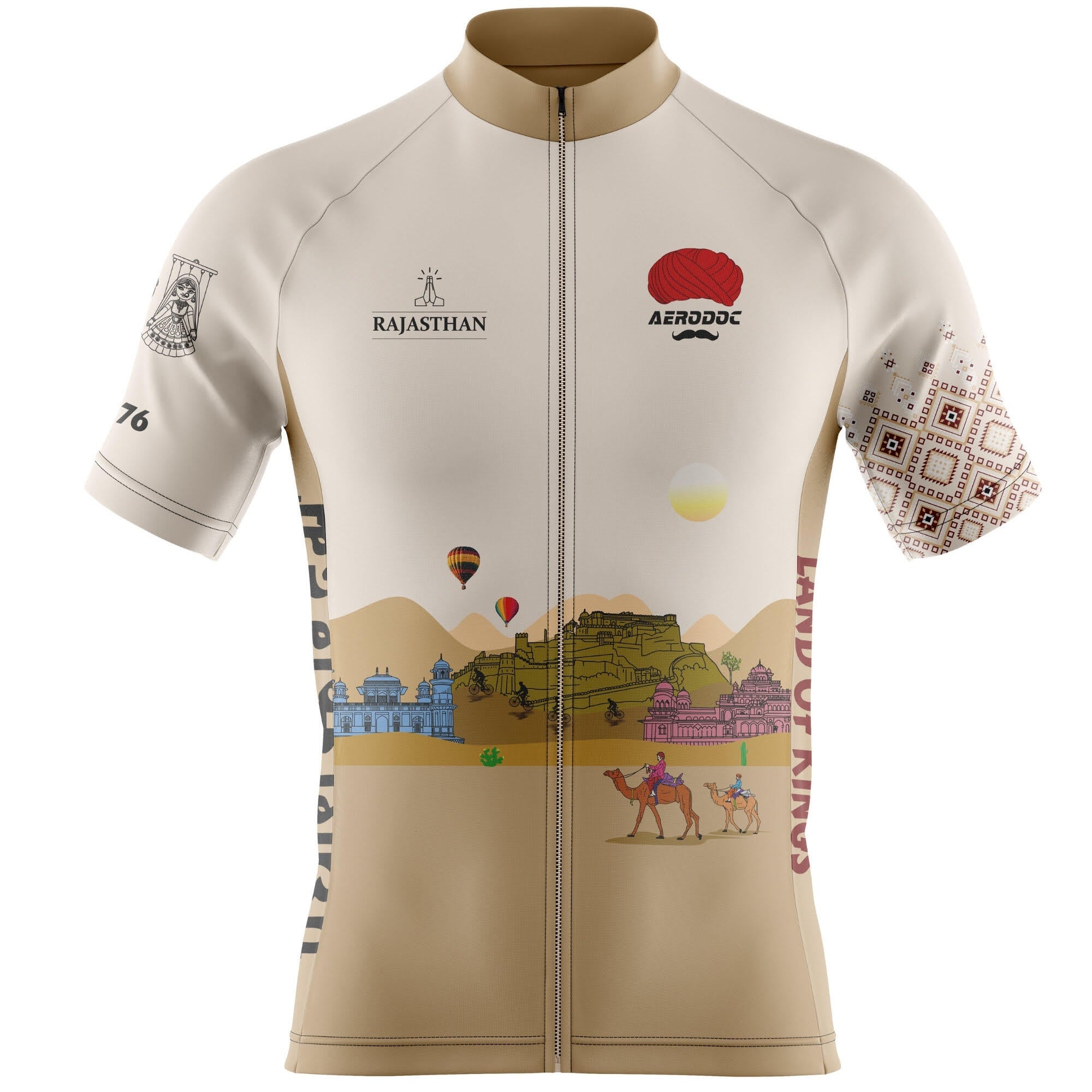From the golden hues of the Thar Desert to the historic charm of Rajasthan’s forts, this design reflects strength, pride, and timeless Indian heritage—perfect for riders who want their jersey to tell a story.